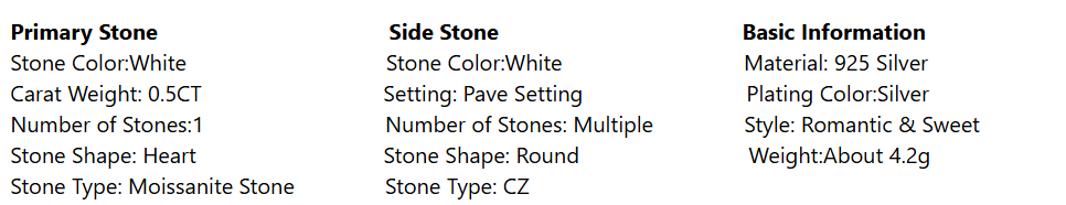 Dual-Stone Brilliance: The 0.5CT moissanite center stone offers exceptional fire and clarity that lasts a lifetime, while the zircon accents provide brilliant, affordable sparkle that complements the main stone perfectly.