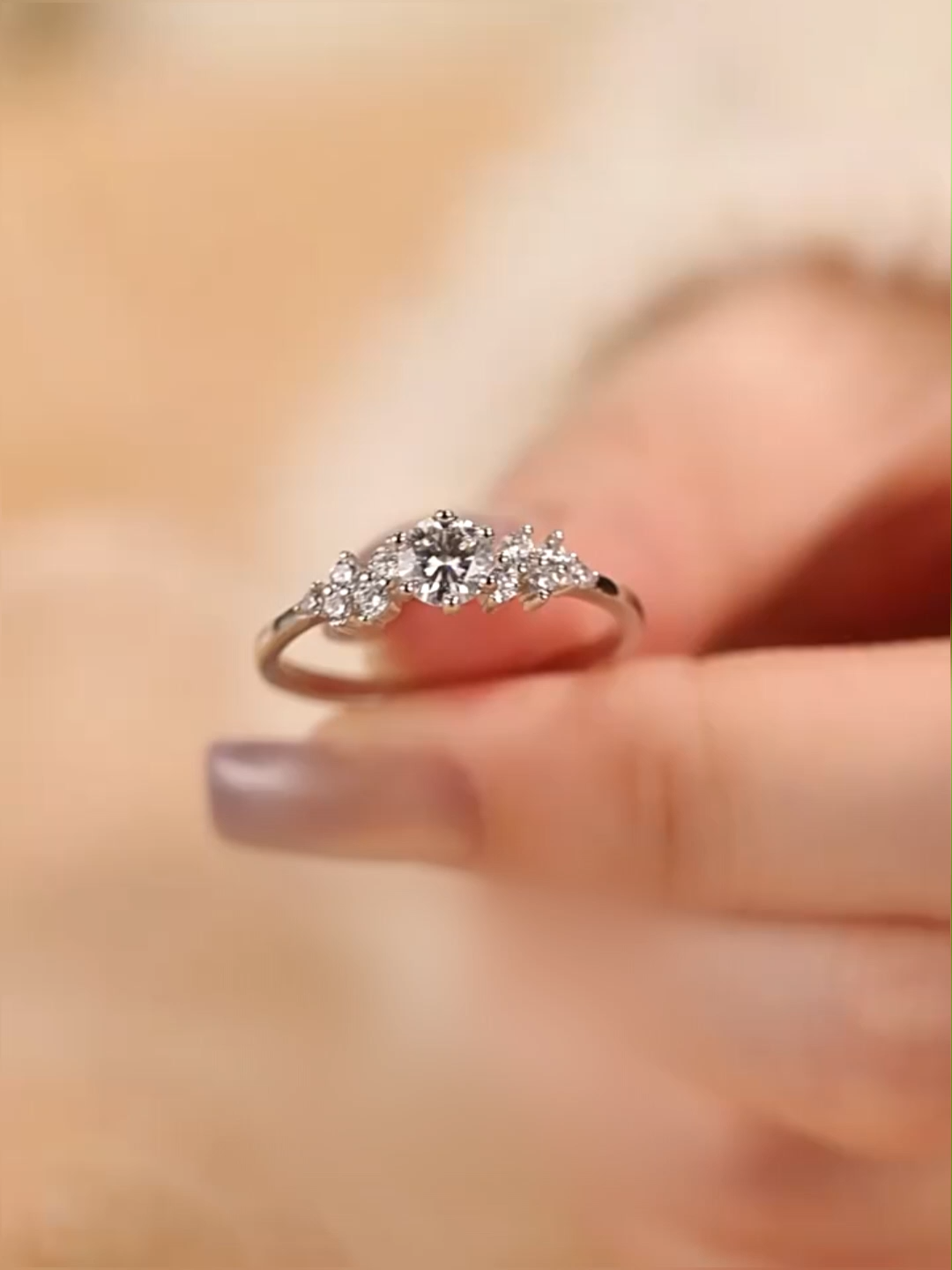 Crafted from premium S925 sterling silver, this ring features a central lab-grown moissanite stone, embraced by a cluster of sparkling accent stones like a petal-wrapped stamen. The delicate, eye-catching design captures the romantic essence of a Berlin evening breeze, turning every glint into a line of heartfelt poetry.