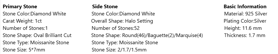 Dazzling Firework Design: The central moissanite is framed by a halo of sparkling lab-grown moissanite accents, creating a "pigeon egg" silhouette that exudes luxury and grandeur.